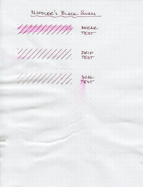 Pleasantly, I also found Black Swan to be quite resistant to water. According to Noodler’s, this ink is about sixteen percent bulletproof – but it stands up quite well under most scenarios. A smear test, in which I ran a wet finger across the page, does show some bleeding, but the lines remain bold and readable.