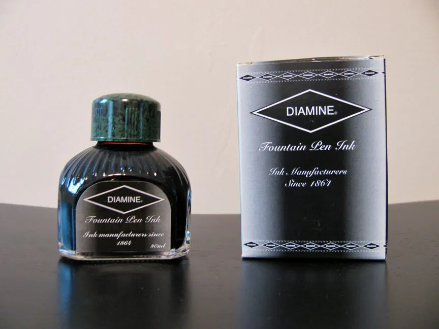 Diamine inks are available in a 30ml plastic bottle, which is utilitarian in appearance, and an 80ml glass bottle, which is slightly less so. The smaller plastic bottle has a neck that is very small in diameter. I found that some of my larger pens, like a Lamy 2000, would not fit all the way in, which made getting to the ink a bit of a challenge. My recommendation would be to go for the larger bottle.