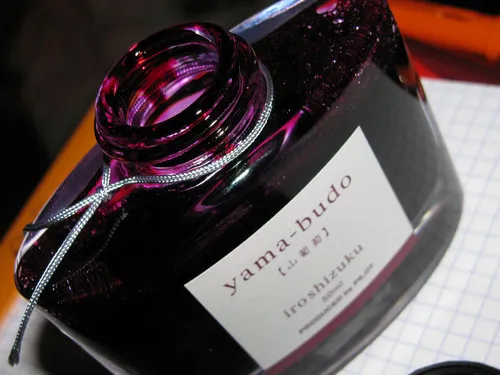 As with the other Iroshizuku inks, Yama-budo comes in a beautiful, solid, 50 ml bottle that looks great on one’s desk. The bottle has a depression in the base to allow for the last drops to be claimed with ease. The only minor drawback to this ink is the cost – for a comparable volume, Iroshizuku tends to run 50% to 100% more than other inks.