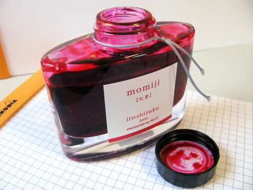 As with the other Iroshizuku inks, Momiji comes in a beautiful, solid, 50 ml bottle that looks great on one’s desk. The bottle has a depression in the base to allow for the last drops to be claimed with ease. The only minor drawback to this ink is the cost – for a comparable volume, Iroshizuku tends to run 50% to 100% more than other inks.