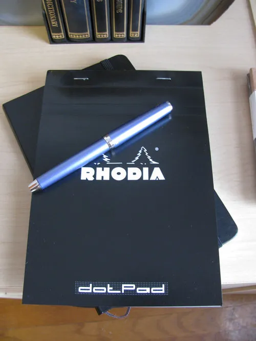 All in all, I’ve been very, very happy with these pads. Recently, though, I received a review copy of the new Rhodia Dot Pad, which is in all respects identical to the pads that I had been using, except that it features a dot grid instead of a ruled grid. I’m not certain who originally created dot grid paper, but whoever it was should be knighted, beatified, and inducted into the Awesome Hall of Fame.