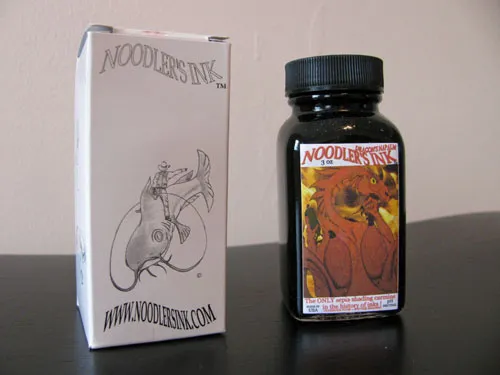 Noodler’s Dragon’s Napalm comes in a standard 3 oz. Noodler’s bottle that’s filled to the brim – so be careful when opening. Noodler’s intentionally uses stock bottles and lids to keep their prices low, which means that they aren’t intended to be show pieces in and of themselves. They are functional and stable, but not objets d’art intended for the top of one’s desk.