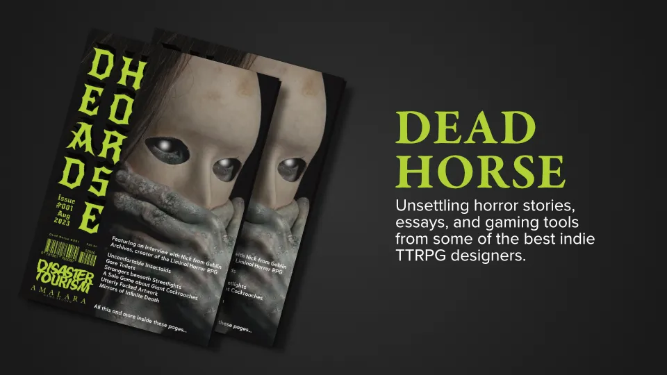 Dead Horse — I also partnered with Disaster Tourism to publish the print version of Dead Horse, a zine of unsettling horror featuring fiction, essays, and gaming material from some of the best indie creators around.