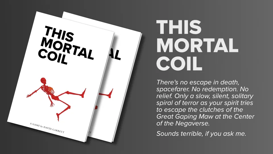This Mortal Coil, a game about necromancers in space, was easily the biggest project I’ve ever completed. It’s a setting and supplement for Liminal Horror, a modern-horror hack of Cairn.